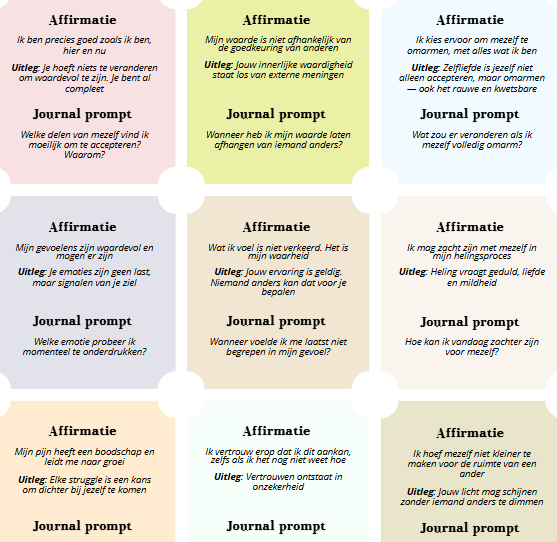 📋 Praktische tools – zoals DIY-recepten, printbare affirmatiekaarten & journaling prompts